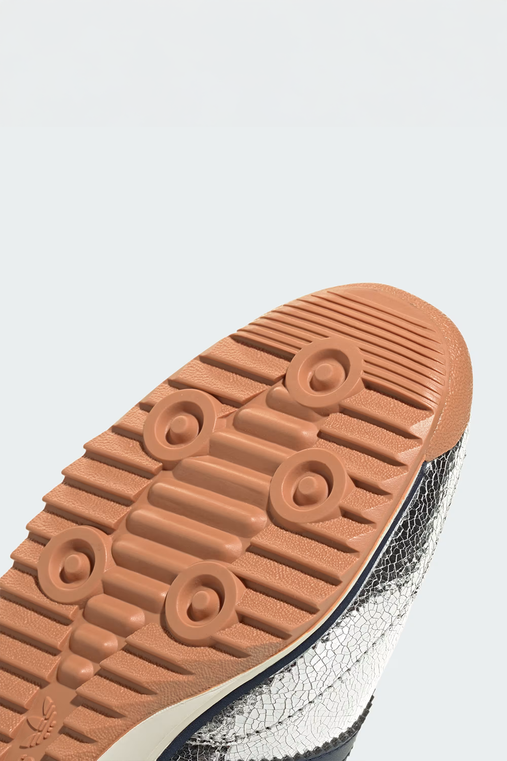 Une basket iconique revisitée dans une version contemporaine aux reflets argentés. Elle perpétue l’héritage de la marque en associant design rétro et finitions modernes.